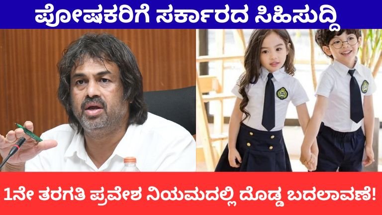 1ನೇ ತರಗತಿ ಪ್ರವೇಶ ನಿಯಮದಲ್ಲಿ ದೊಡ್ಡ ಬದಲಾವಣೆ!! ಪೋಷಕರಿಗೆ ಸರ್ಕಾರದ ಸಿಹಿಸುದ್ದಿ.